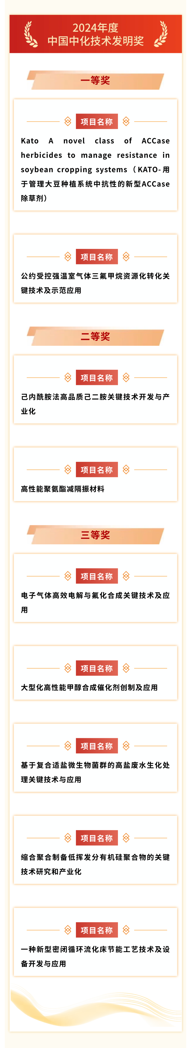 近日,2024年度中国中化控股有限责任公司科学技术奖(以下简称“中国中化科学技术奖”)获奖名单正式发布,经公司内外部专家评审,中国中化科学技术委员会集中审议,共评选出技术发明奖9项、科技进步奖26项、专利奖29项。