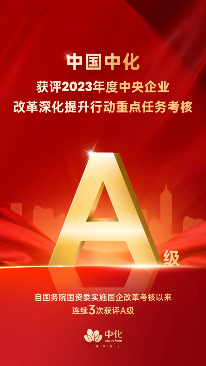 2024年7月,国务院国资委发布2023年度中央企业改革深化提升行动重点任务考核结果,中国中化获评A级。这是自国务院国资委2021年实施国企改革考核以来,公司连续第3次获评A级。