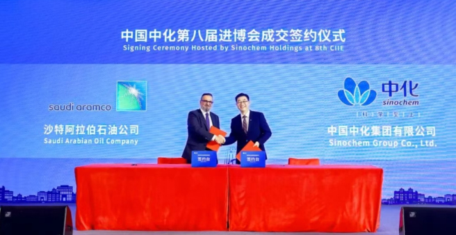 在签约仪式上,中国中化与来自沙特阿拉伯、阿曼、哈萨克斯坦、法国、日本、韩国、比利时、马来西亚、莫桑比克、泰国等10余个国家和地区的近20家企业签订采购合作协议,在原油与成品油、食品和农产品、化工产品、化工装备、服务贸易等多个领域深化合作,采购总额达144亿美元,再创历史新高。