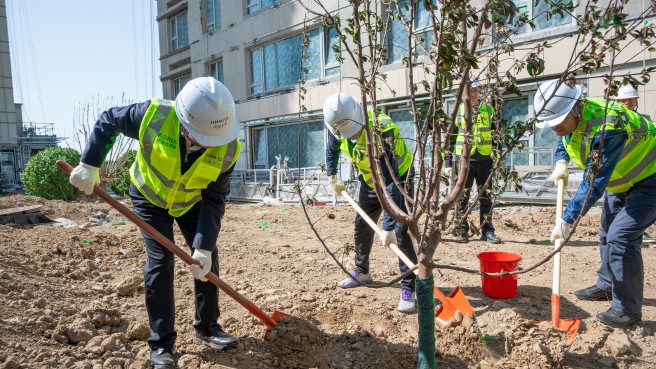 在植树地点,中国中化人扶苗正树、挥锹铲土、踩实固苗、提水浇灌,每个环节井然有序,一株株挺拔的树苗新绿盎然。每一棵希望的树苗,不仅是中国中化人对雄安新区绿色发展的见证,也代表着中国中化人投身雄安新区建设发展的坚定信心和决心,更蕴含了中国中化基业长青的美好愿景。