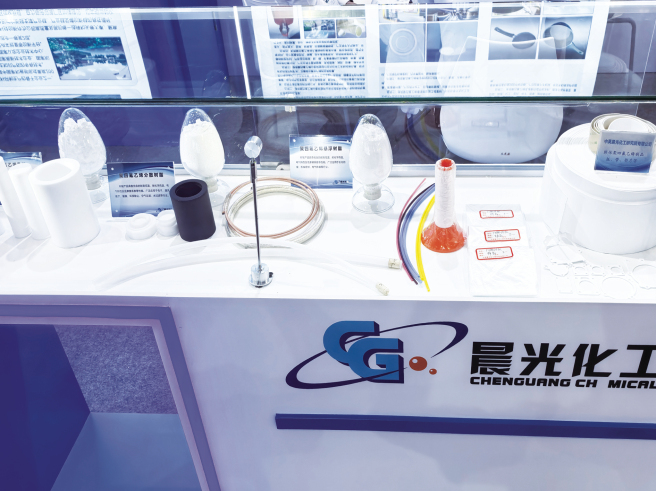 中昊晨光是国内专业从事有机氟材料研究开发和生产的龙头企业,也是国内率先开展全氟辛酸(PFOA)等限制物质替代技术开发应用的企业。本次展会上,中昊晨光重点展示了氟树脂、氟橡胶等产品及应用制品,展现出企业在高端氟材料领域的领先实力。