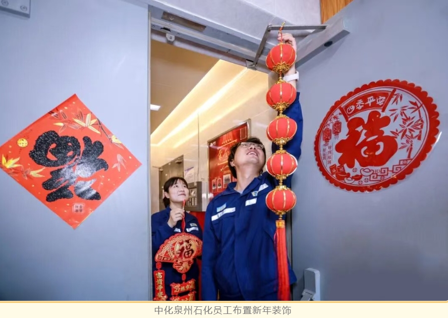 新春将至,中国中化各企业员工精心布置办公区,挂灯笼、贴窗花,处处洋溢浓浓年味。