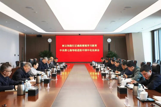 中国中化领导班子成员,中央第七指导组副组长舒印彪及全体成员参加会议。